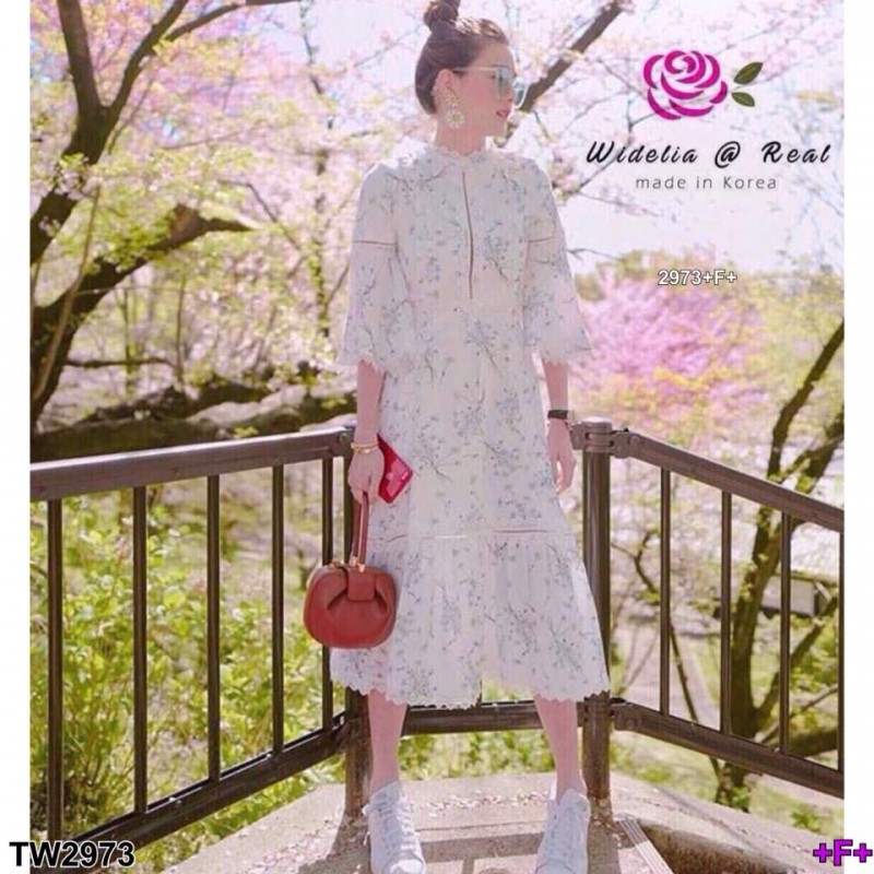 เดรสปาดไหล่ กระโปรงแหวกหน้าพิมพ์ลายดอก TW2605